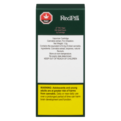 Delta 8 THC + delta 9 THC vape – derived from the highest purity cannabis extract. Rich tropical fruit punch flavour with notes of citrus, coconut and pineapple. Fortified with over 20 natural, sativa-strain terpenes including Myrcene, Humulene, ?-Caryophyllene, Terpinolene and ?-Pinene. This vape does not contain any carriers, cutting agents, or artificial ingredients, allowing consumers to experience the unique effects of delta 8 THC & delta 9 THC in their pure forms. Comes in a 1.0g cart, custom manufactured using high quality ceramic and glass parts with leak-proof sealing and a standard 510 thread. Enter the realm of delta 8 THC and experience the world in a new light.