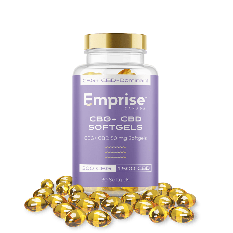 Emprise’s CBG 10mg + CBD 50 mg Softgels is a CBG+ CBD-dominant formulation. Each softgel delivers 10 mg CBG & 50 mg CBD. The product is formulated with Full Spectrum CBG + CBD Cannabis Extracts and coconut-derived MCT carrier oil.