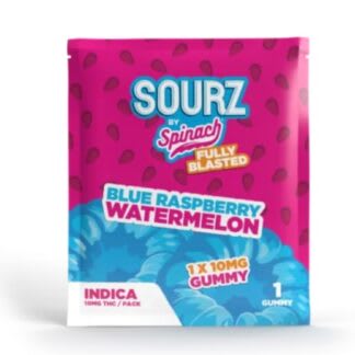 Prepare for blast off! SOURZ by Spinach® Fully Blasted Blue Raspberry Watermelon gummies are action-packed with 10 mg THC per piece. With out-of-this-world flavours like electric blue raspberry and refreshing watermelon, send your taste buds soaring! This dual-flavoured gummy is over-the-top with natural flavours and blasted with sour crystals. Enjoy 1 gummy per pack, 10 mg THC total.