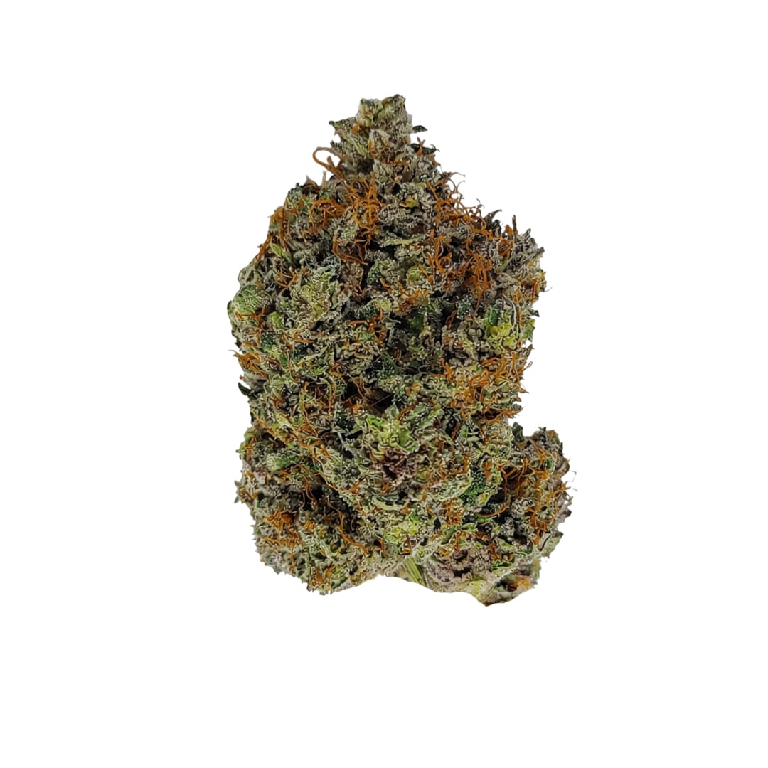 Lindsay OG is a legacy indica selected from classic OG Kush genetics and grown by SUAY to express depth and structure. The flower showcases a traditional OG build — dense, compact buds with balanced structure and a heavy resin presence throughout. Deep green coloration is contrasted by rich amber pistils and finished with a thick coating of crystalline trichomes that give the surface a bright, frosted appearance.