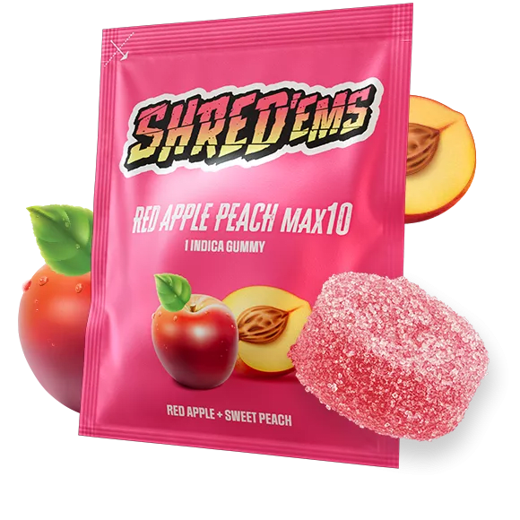 Looking for a sweet escape? SHRED’ems Red Apple Peach has you covered! This juicy indica gummy blends the crisp sweetness of red apple with the smooth, mellow flavour of ripe peach. With 10 mg THC packed into just one MAX10 gummy, it’s the perfect treat for when you want to kick back and chill. Maximum flavour, maximum relaxation—your perfect wind-down companion in a single bite.