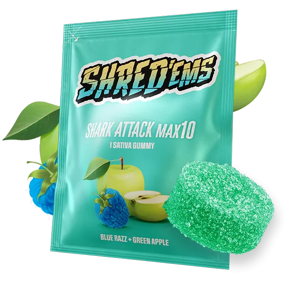 Get ready to sink your teeth into SHRED’ems Shark Attack! This sativa gummy unleashes a fierce wave of flavour with a jaw-dropping combo of blue razz and green apple. And with 10 mg THC packed into one MAX10 gummy, you’re in for a wild ride in just one bite. Perfect for those who want a big flavour and a big buzz without getting bogged down. Dive in, take a bite, and ride the sativa wave!